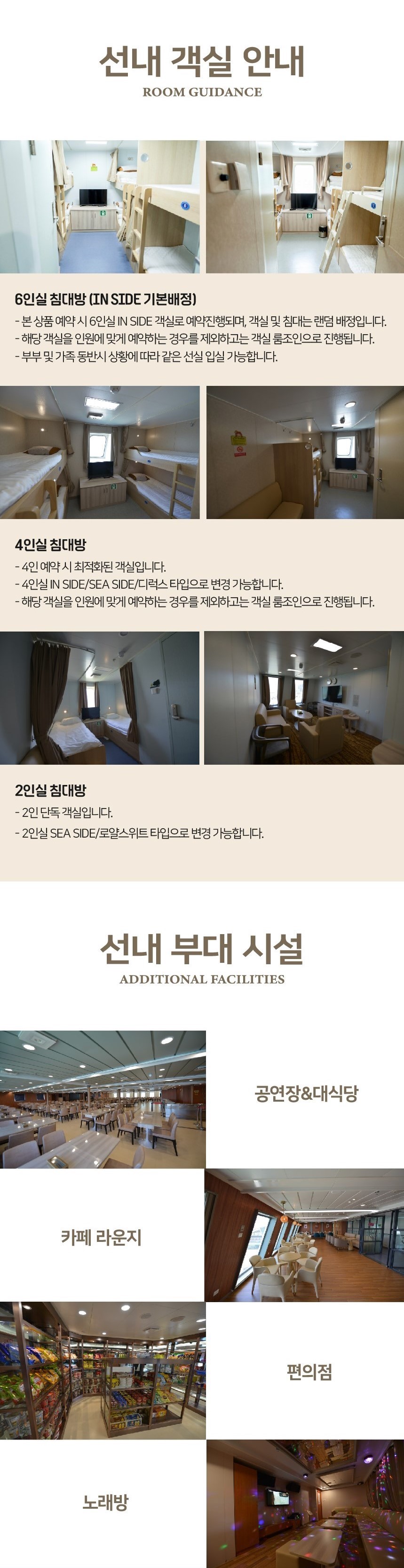 왕복선박비 + 선내 1박 (6인실 INSDIE 기준)